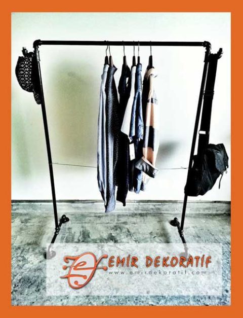 Ferforje raflı elbise askılığı